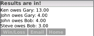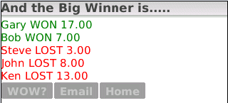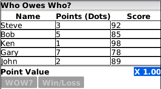 Entering this into the WOW Application, will quickly determines Who owes Who. The Winners simply gets paid by the Losers....